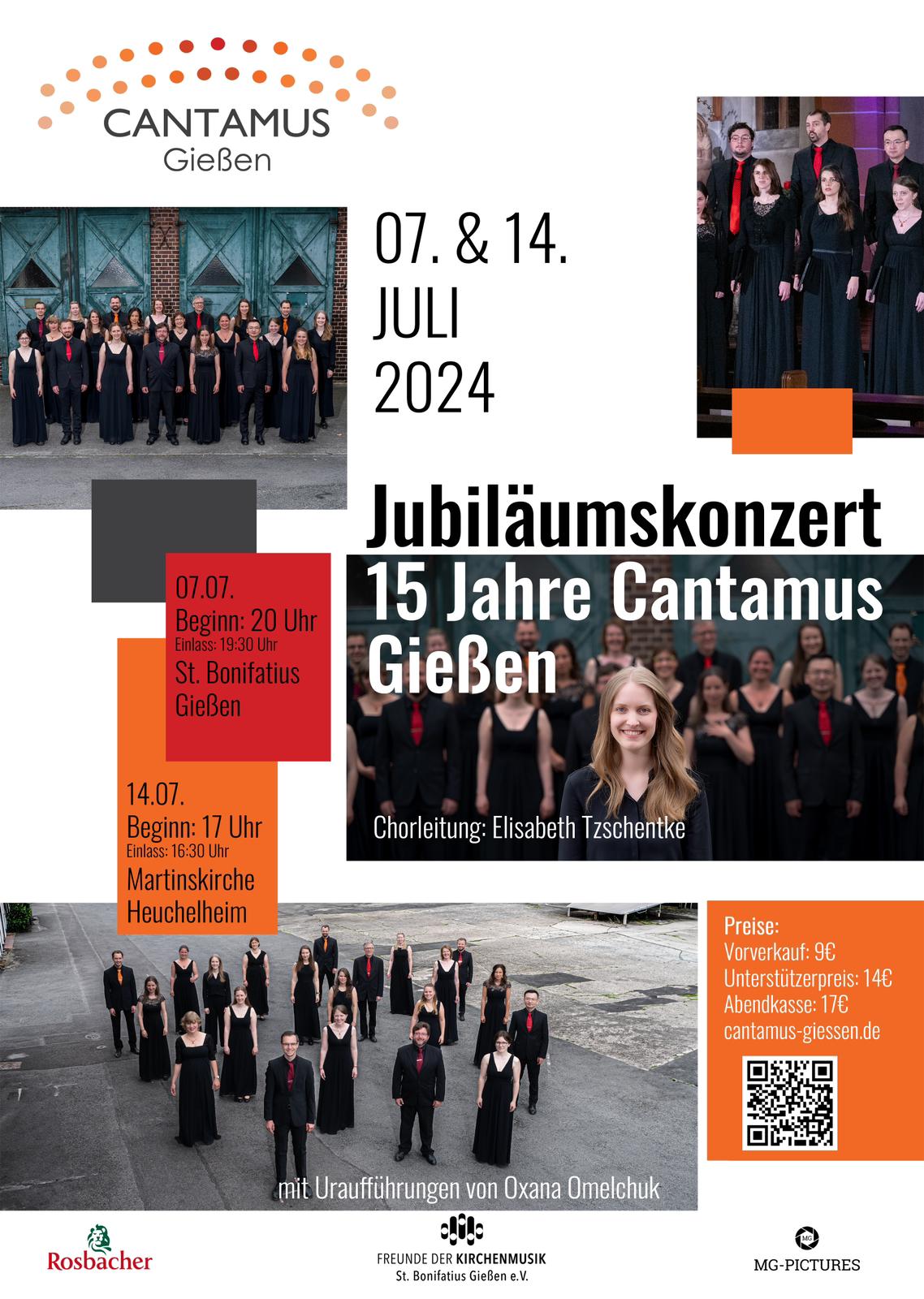 Die rund 40 Sängerinnen und Sänger von Cantamus Gießen feiern 2024 zusammen mit ihrer Chorleiterin Elisabeth Tzschentke den 15. Geburtstag des Ensembles und laden dafür zu zwei Konzerten ein. Am 7. Juli 2024 um 20 Uhr in St. Bonifatius Gießen und am 14. Juli 2024 um 17 Uhr in der Martinskirche Heuchelheim erklingt ein außergewöhnliches A-Cappella-Programm rund um das Thema „Wandel“. Dabei möchte der Chor mit einigen seiner Lieblingsstücke einen Rückblick auf die 15-jährige Chorgeschichte geben, er bringt aber auch drei Uraufführungen zum Thema „Wandel" zur Aufführung.